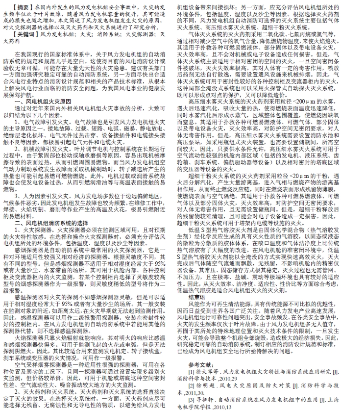 淺析風(fēng)力發(fā)電機組火災(zāi)原因及消防系統(tǒng)的選擇