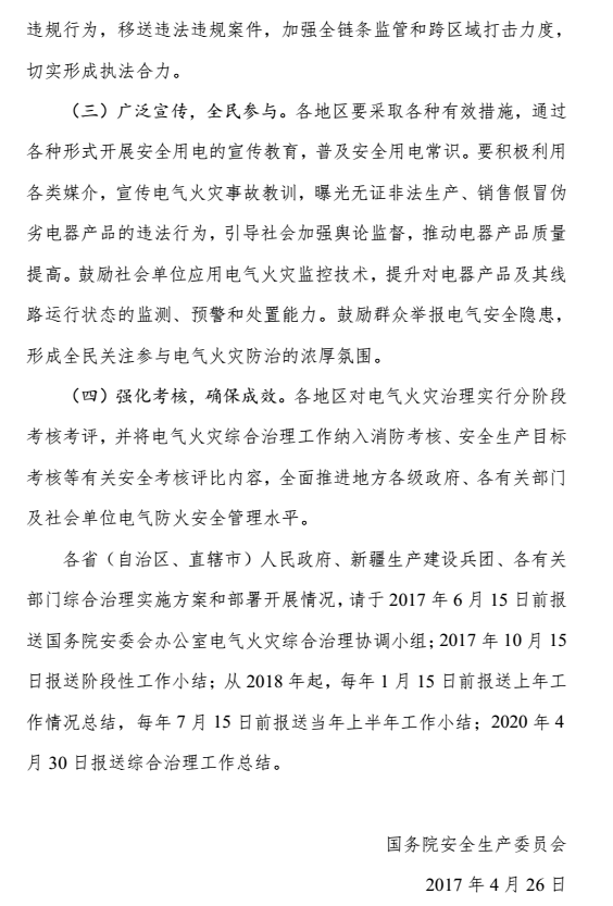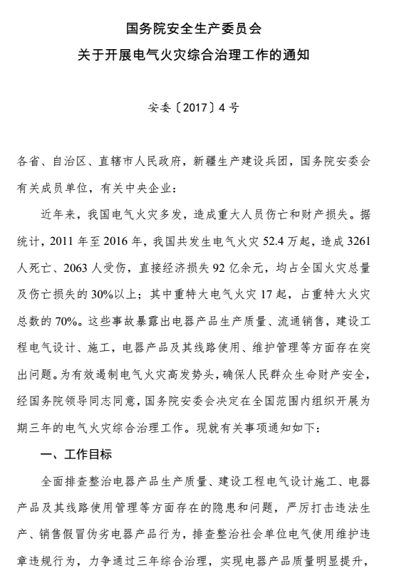 國(guó)務(wù)院安全生產(chǎn)委員會(huì) 關(guān)于開展電氣火災(zāi)綜合治理工作的通知